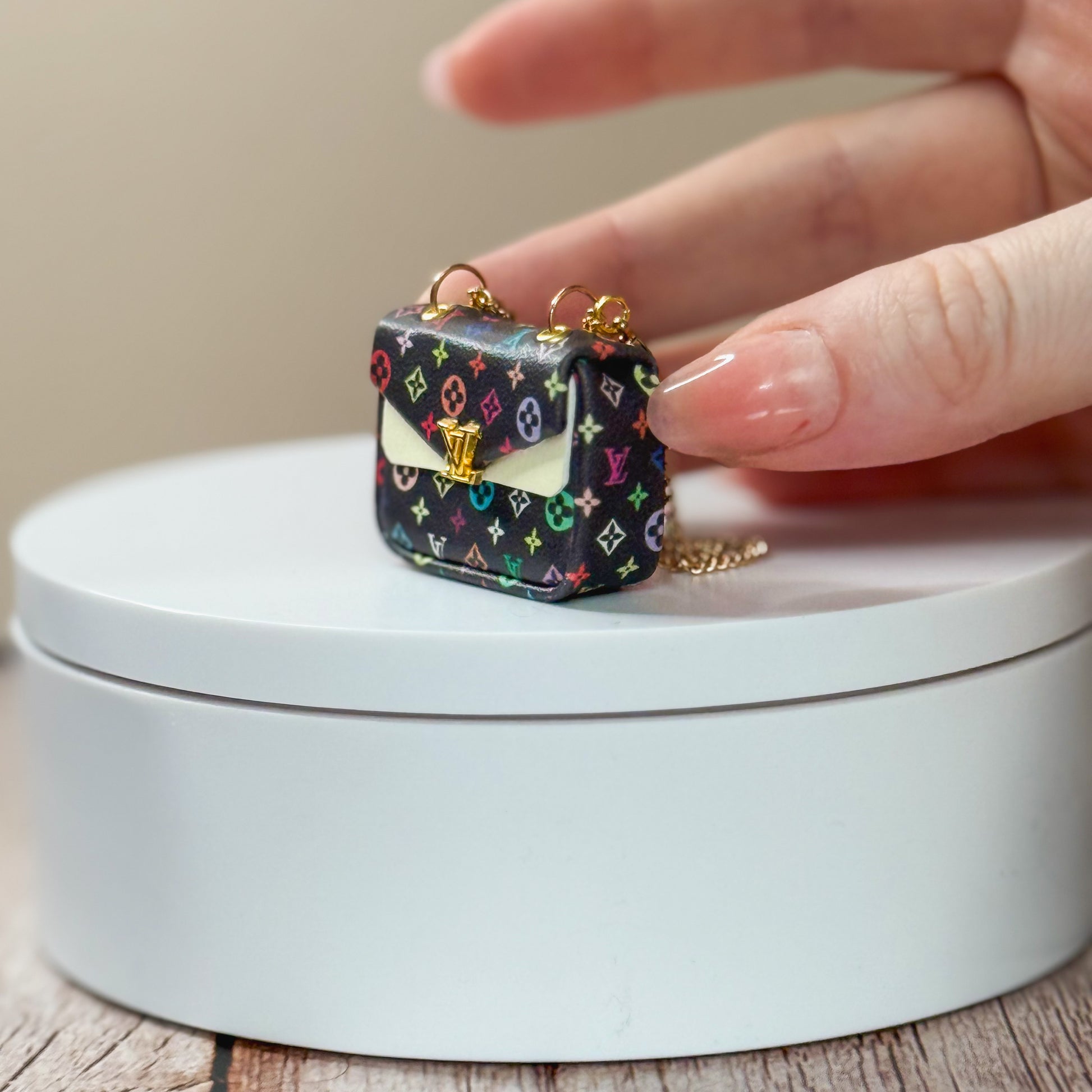 Vibrant, nostalgic, and endlessly stylish — meet the “Louis Vuitton Pochette” from the Mini Designer Bags Collection. This Louis Vuitton–inspired miniature brings back the iconic early-2000s aesthetic with its bold multicolor monogram canvas, gold hardware, and elegant chain strap. A perfect nod to vintage luxury with a playful, collectible twist.